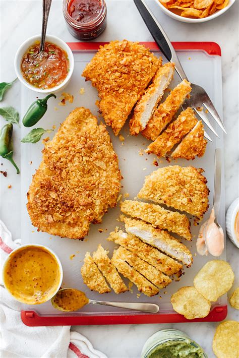 To make this addictive dish, you'll first need to crush up your potato chips into small pieces. Then, mix in some flour, garlic powder, salt, and pepper. Dip your chicken breasts into some beaten eggs, and then coat them in the potato chip mixture. Place them onto a baking sheet and bake for about 20-25 minutes until crispy and golden brown.Crispy, Crunchy, and Oh-So-Satisfying: A Winning Dish for Any Occasion